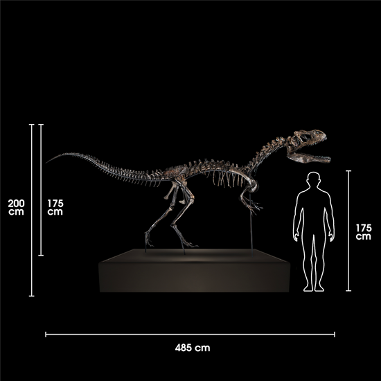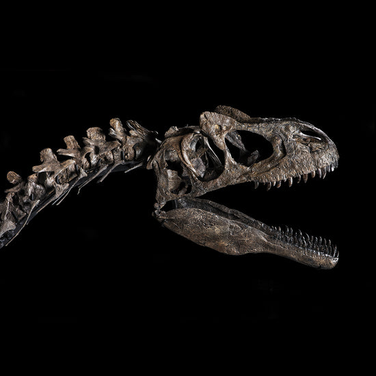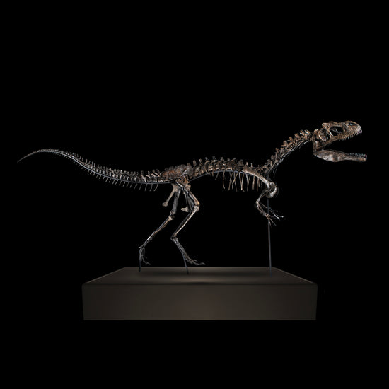 Posizionato drammaticamente in bilico, come se stesse liberando dalla sua prigione terrena, questo Allosaurus cattura la presenza imponente e misteriosa dei dinosauri.
